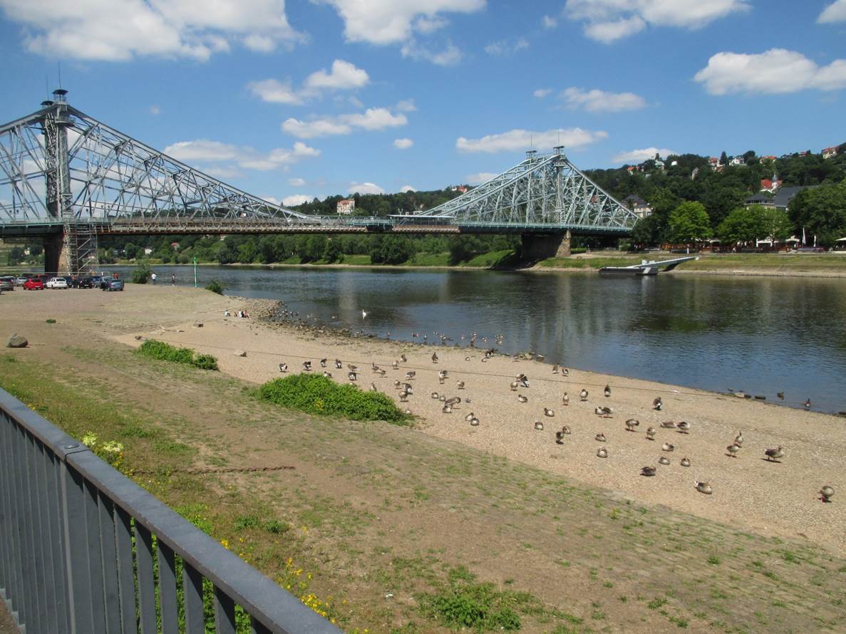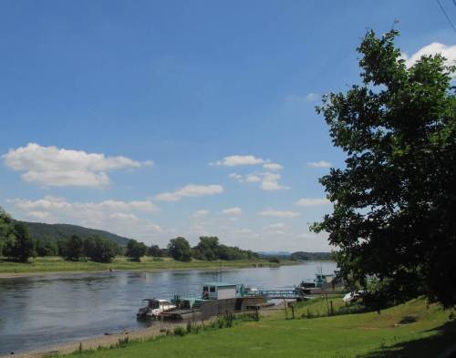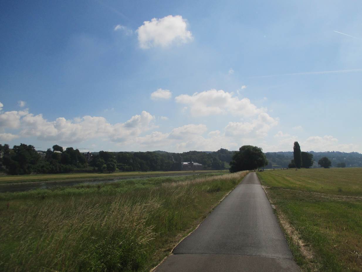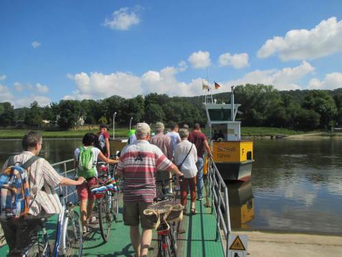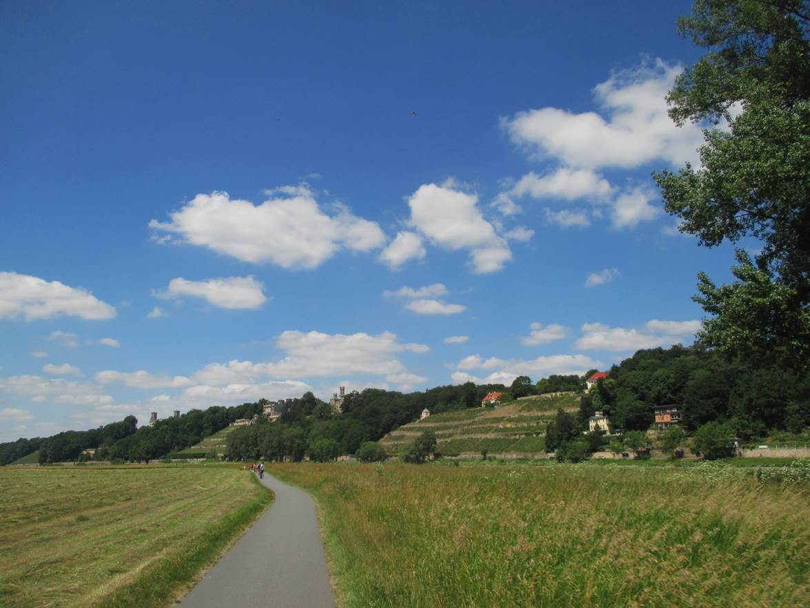 Viele Menschen nutzen den Elberadweg, wie wir auch am Wohnort westlich Hamburg, meist in Teilstrecken. Etliche radeln ganz erhebliche Touren, bis hin zur „Totalen“, von Tschechien bis zur Mündung. – Das soll es für uns nun nicht werden. Aber das angesagt gute Wetter und die Hotel-Räder verlocken uns, Schloss Pillnitz anzusteuern.