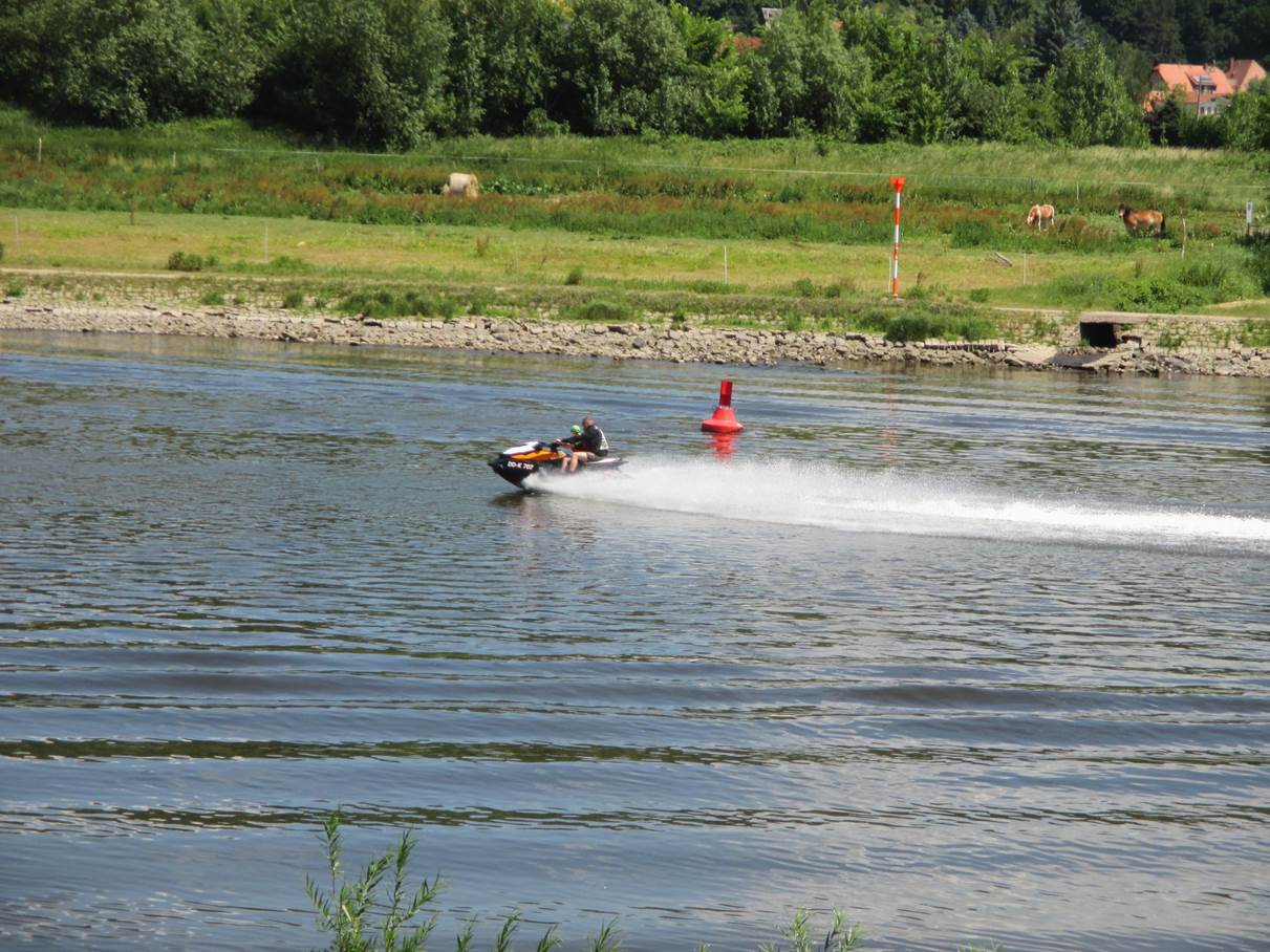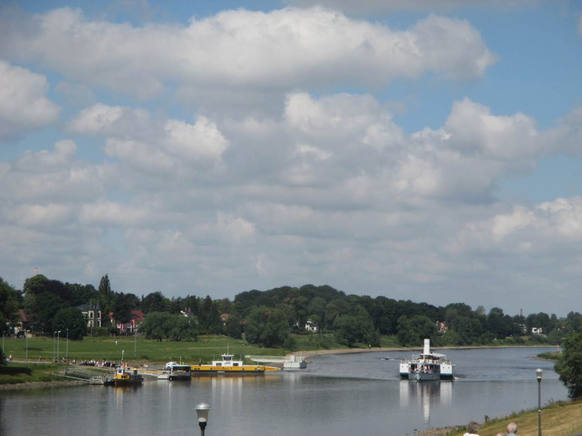 Man staunt, die Schiffe der Elbschifffahrt sind so flach gebaut, dass dieser Raddampfer die Passage schafft.