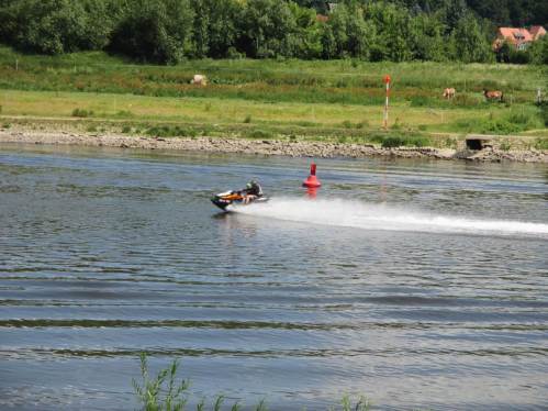 Immerhin ist die Elbe ja – auch hier – Bundeswasserstraße, rote und grüne Tonnen markieren das Fahrwasser.