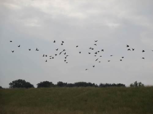 Ein Starenschwarm erholt sich von den Kirschen des anderen Elbe-Ufers – mal was anderes fressen.
