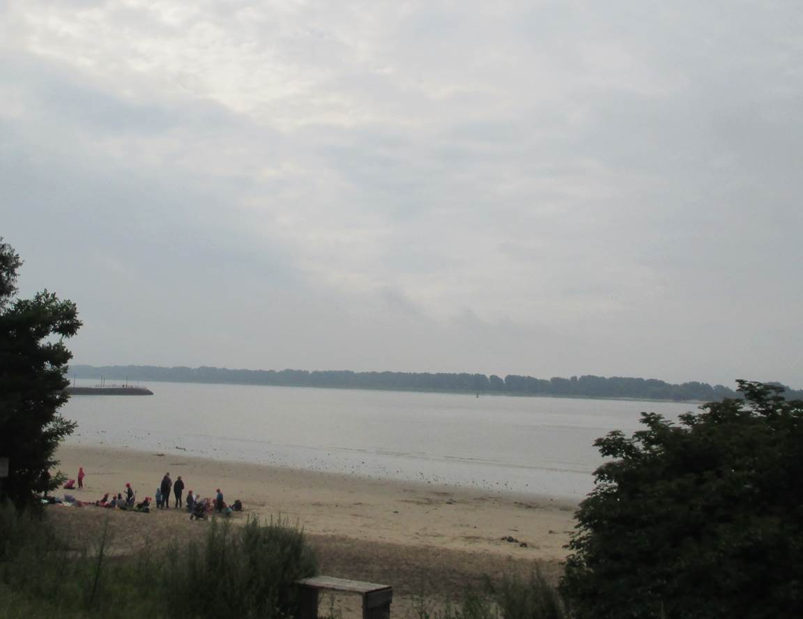 Blick am Hauptdeich der Elbe entlang gen Osten – die Wolken ziehen ab.