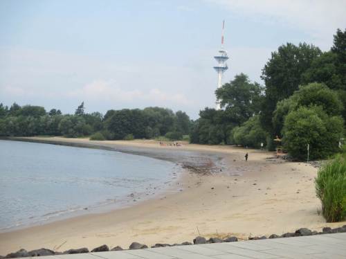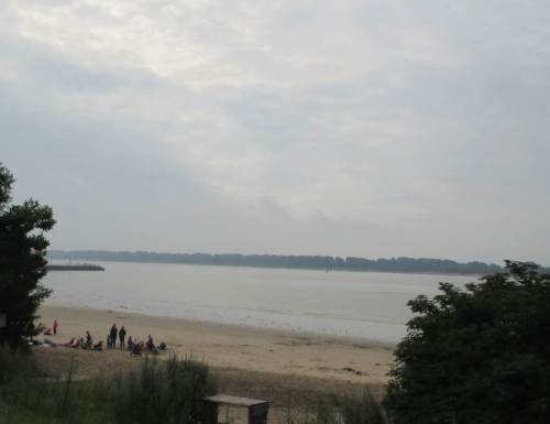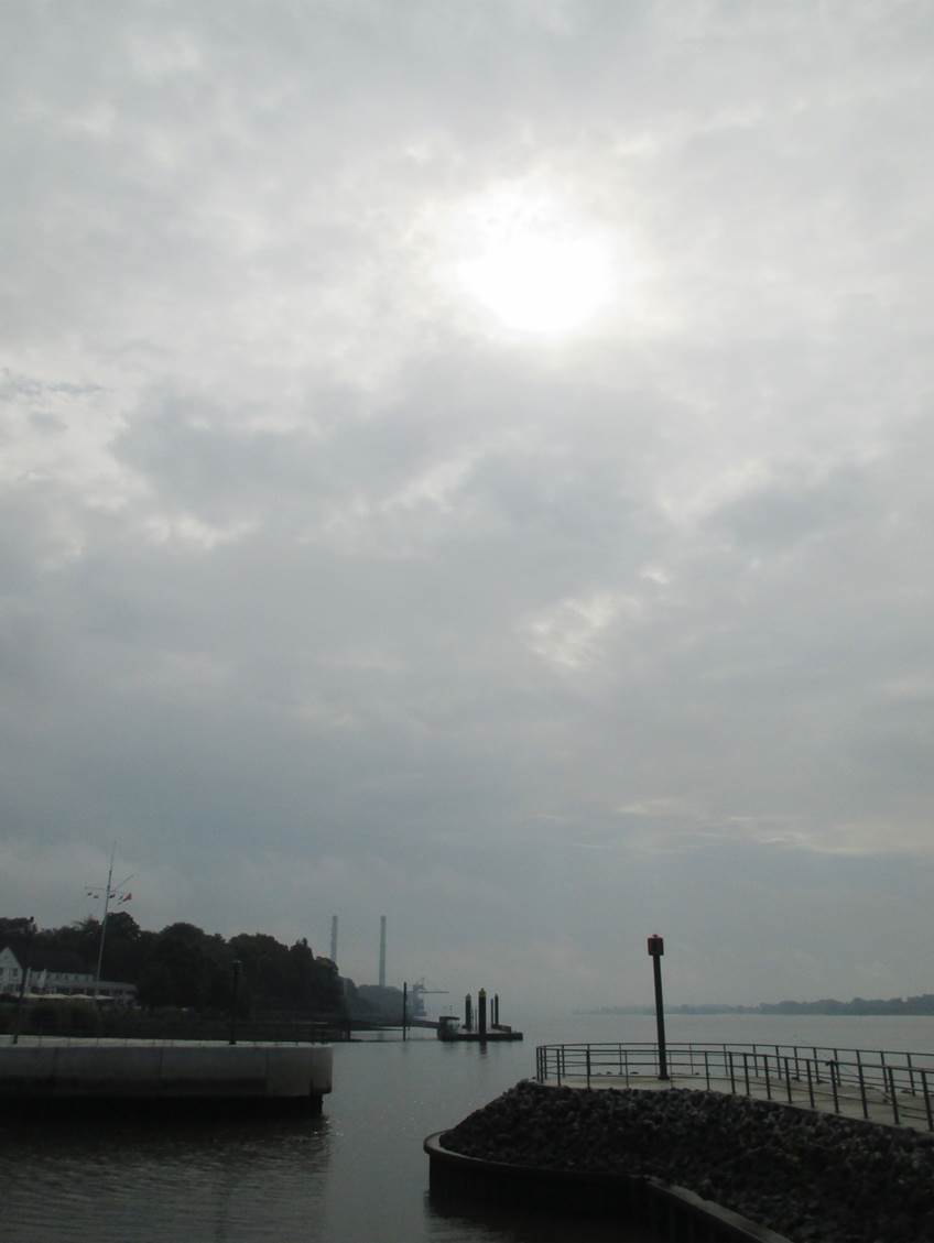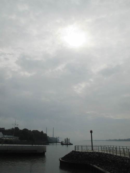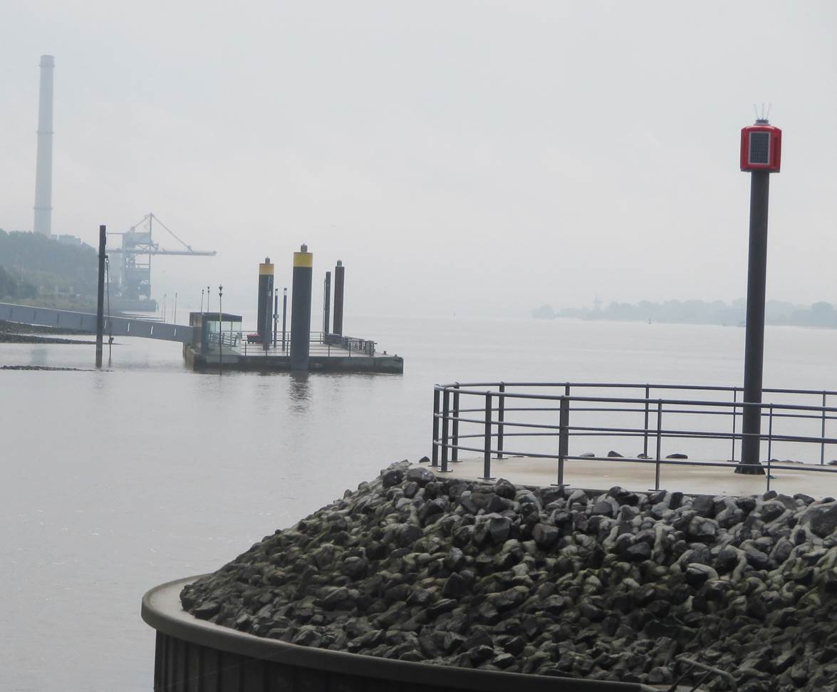 Blick nach Osten – der Hamburger Hafen liegt noch im Dunst, ist fast durch sowas wie Seenebel unsichtbar.