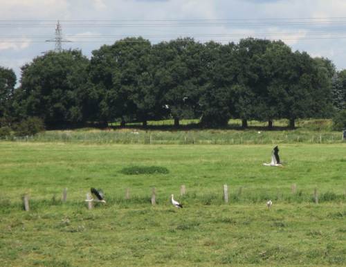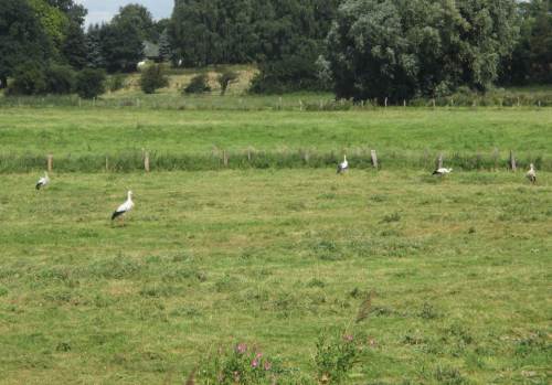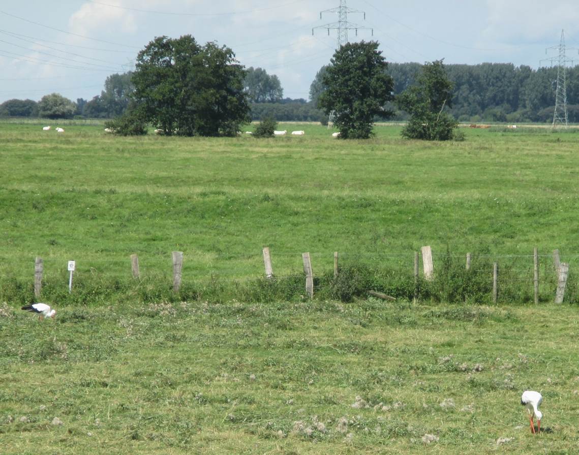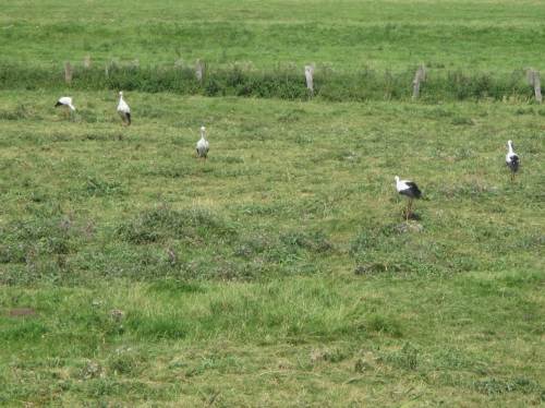 20 (in Worten: zwanzig) Störche hatten sich hier auf der frisch gemähten Marschwiese vor Holm eingefunden. So viele auf einem Fleck habe ich noch nie gesehen!
