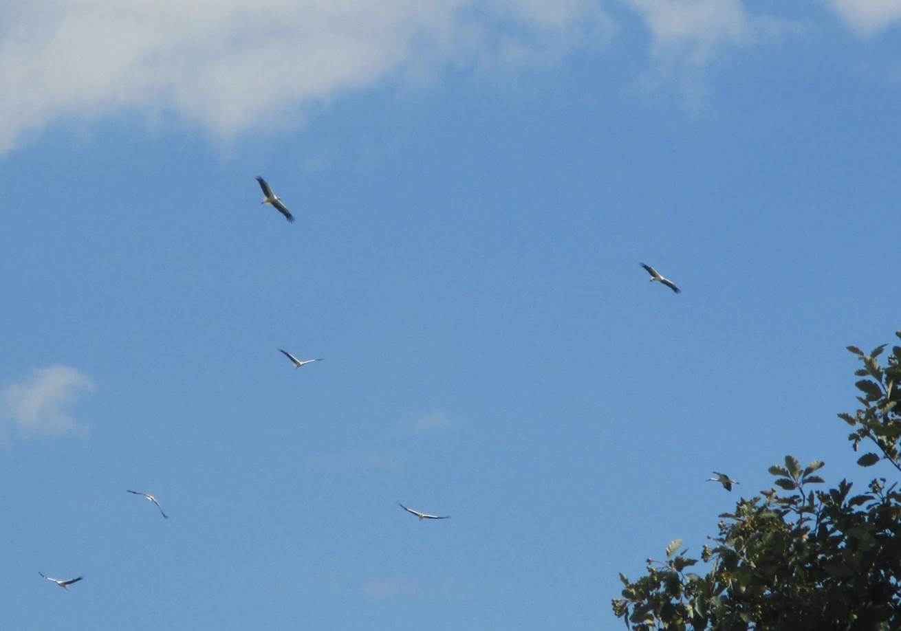 Hat denn der Flug nach Süden schon begonnen – oder üben die noch? Auf der Störche-auf-Reisen-Seite finde ich keinen Hinweis auf einen frühen Start. Der jüngste Eintrag ist vom 17. April. Ich werde nachfragen, bin gespannt auf die Antwort.