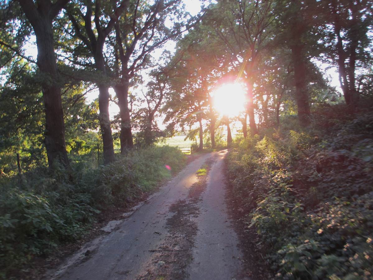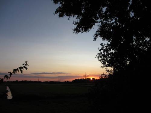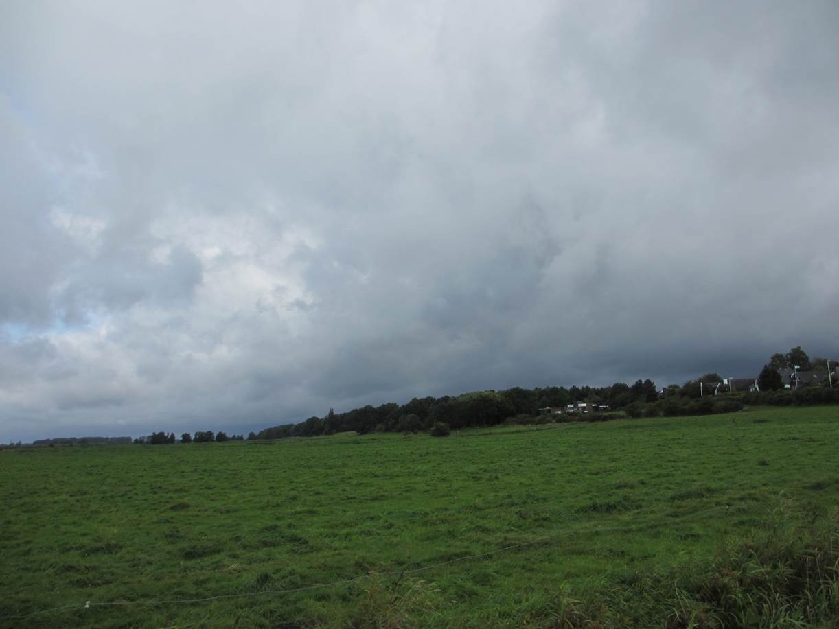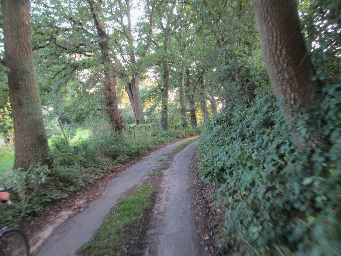 Schön im Schatten am (in heutiger Sicht erstaunlich niedrigen) alten Einlagedeich wartet mein Auto. Daneben sind die traditionellen Anbauflächen zu erkennen.