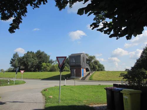 Auf geht`s Richtung Wanderfischvortrag – vorbei an einem zur Vogel-, Fledermaus- und Insektenherberge umgewandelten Trafohäuschen.