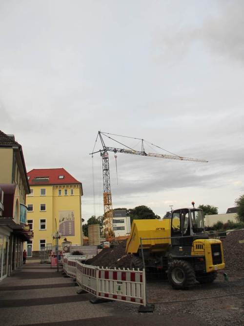 Manch einer meint angesichts der riesigen Sandberge, dort auf der Baustelle bewege sich nichts. Dieser statische Eindruck des Kurzbesuchers trügt. Ich bin überrascht, wie viel seit meinem vorigen Besuch Anfang Juni schon wieder geschehen ist.