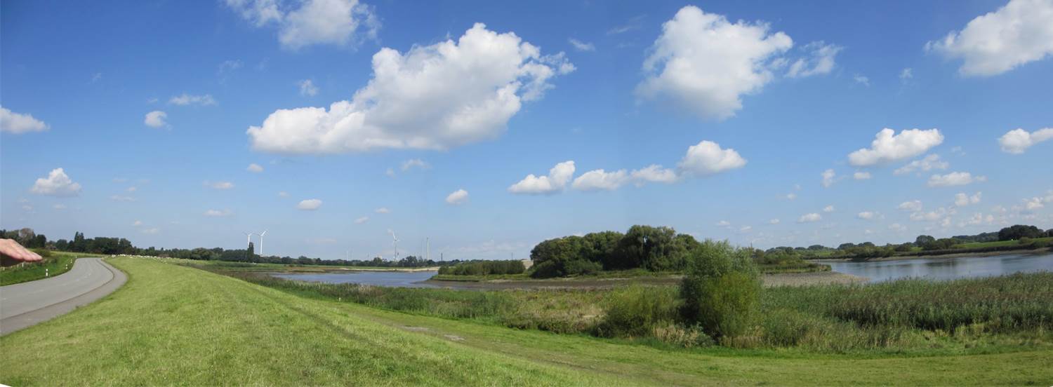 Blick nach Norden, Richtung Baustelle in breit – Deich, neuer Flutraum, Tide-Auwaldreste, Norderelbe.