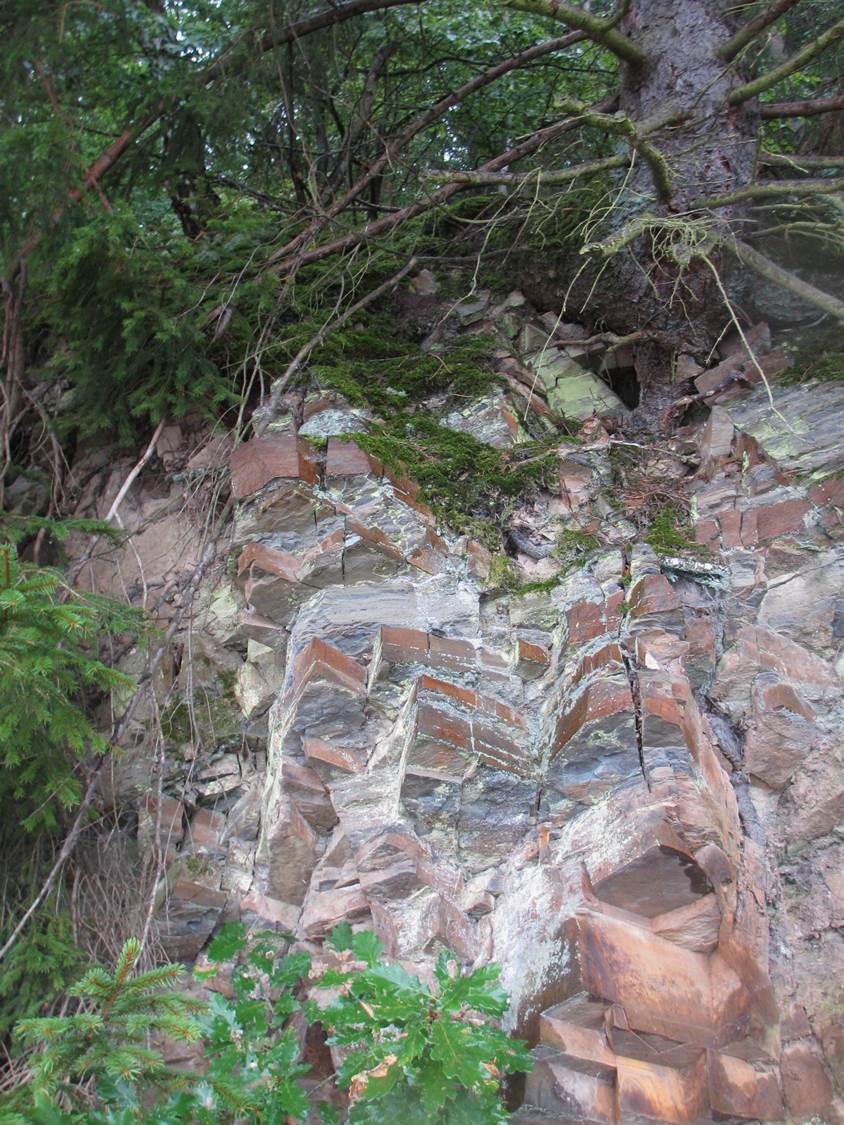 Nördlich wandere ich entlang des Hammerbergs, startend in Höhe des Baumkronenpfades. Es regnet – gut, wasserdicht gekleidet und durch Bäume windgeschützt zu gehen.