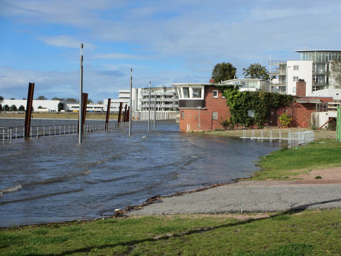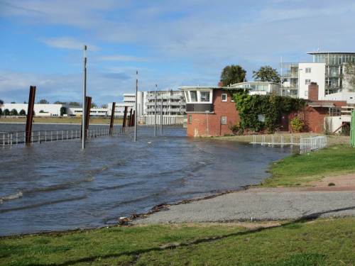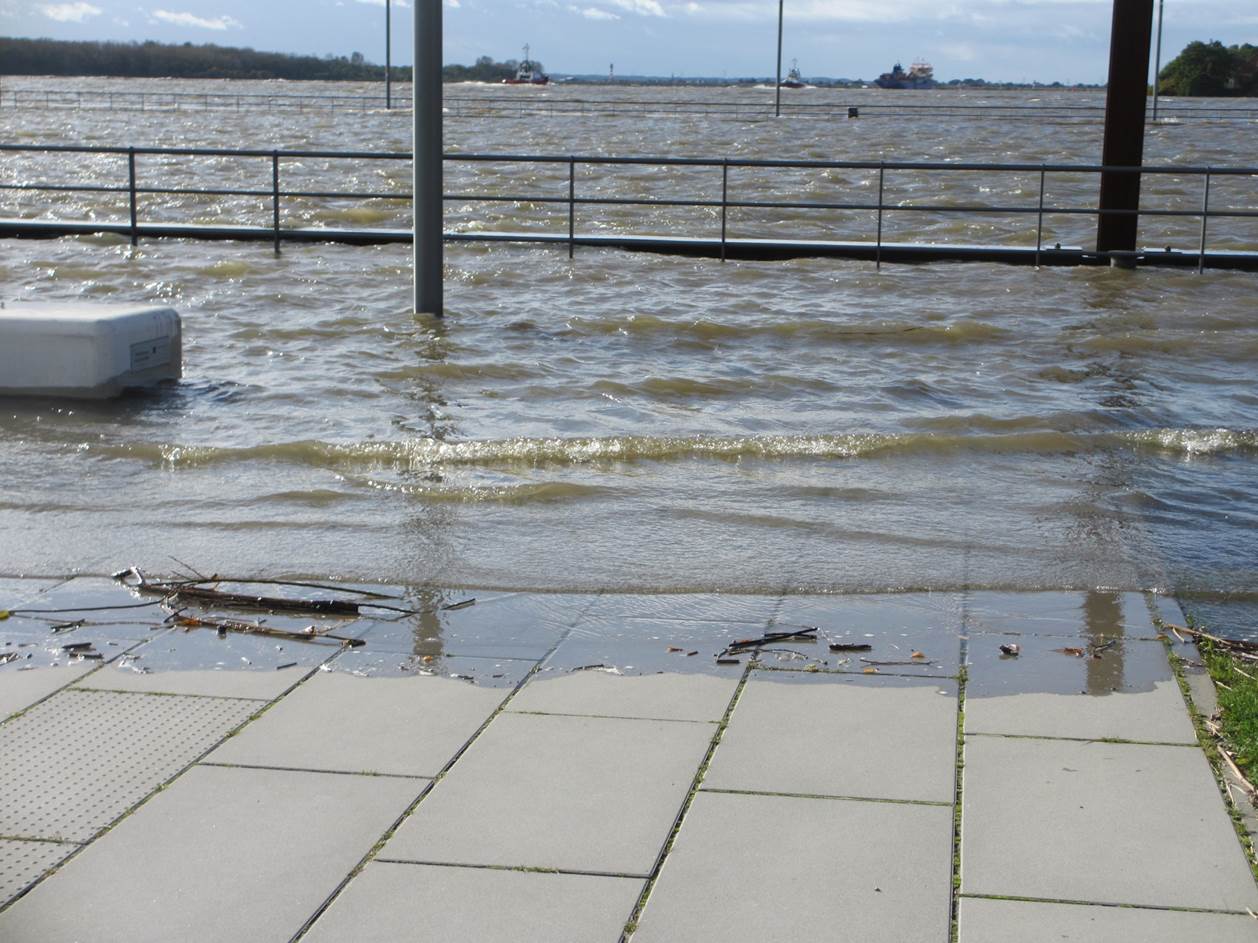 Immerhin ist trotz Xavier-verursachter Massen-Baumsägereien möglich gewesen, das Fluttor vor der vorerst höchsten Flut plus 1,50 m über Thw zu schliessen.