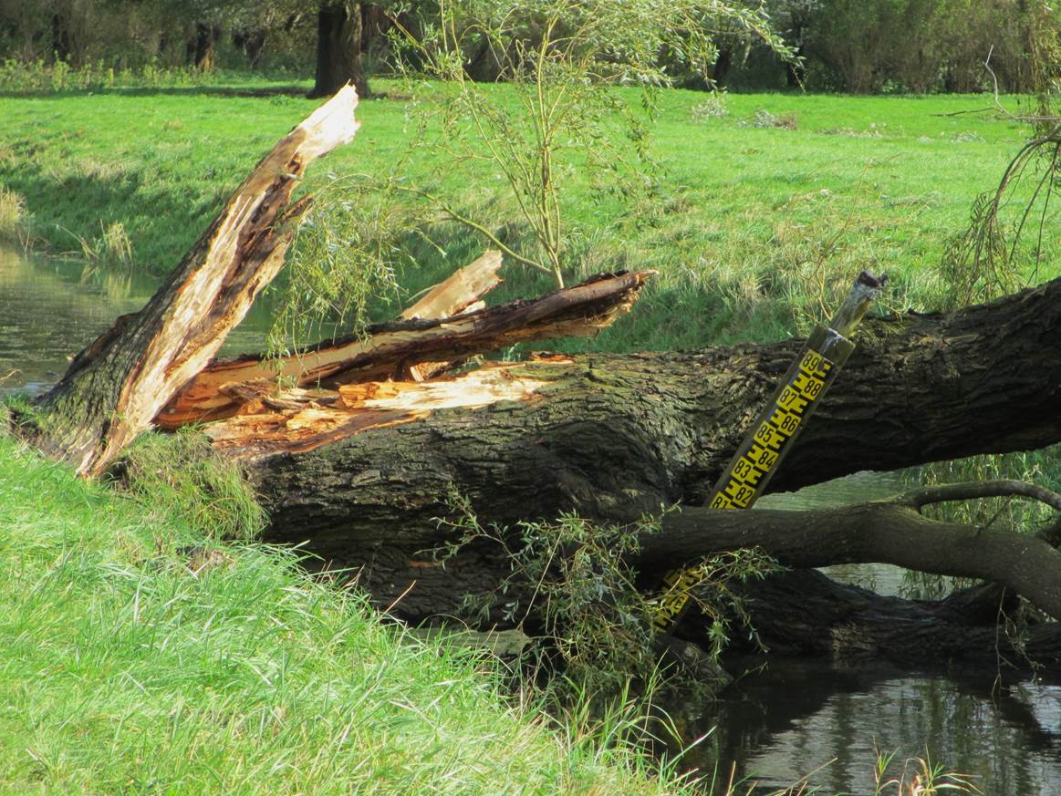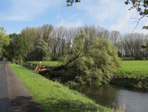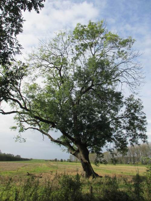 Erstaunlich, die sturmerprobte, von Ackernutzung auf nassem Gelände bedrängte Esche steht, im Gegensatz zu gerupften Kolleginnen recht unbeeindruckt.