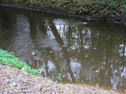 Während der Begehung aller Schüttungen mit den Gruppenleitern treffen wir die Uferpatrouille – zwei Stockentenpärchen sehen das Gelände noch einmal „vorher“ an.