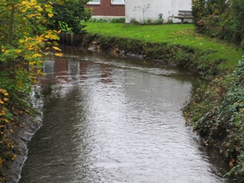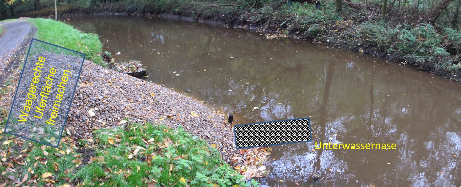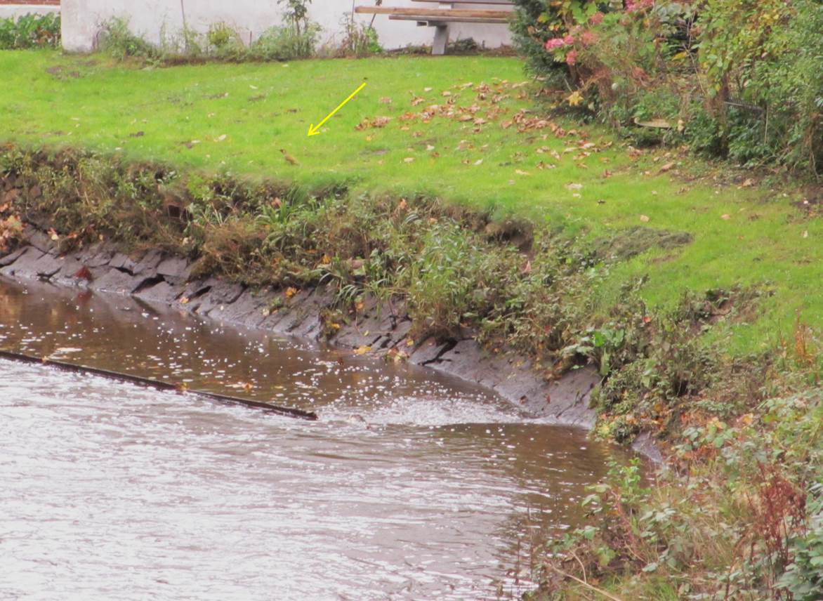 Der gepflasterte Bereich unterhalb der Mühlenbrücke wird nun scharf überströmt – kein Aufsteigen strömungsschwacher Arten ist in solchem Zeitraum möglich.