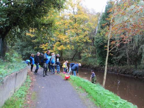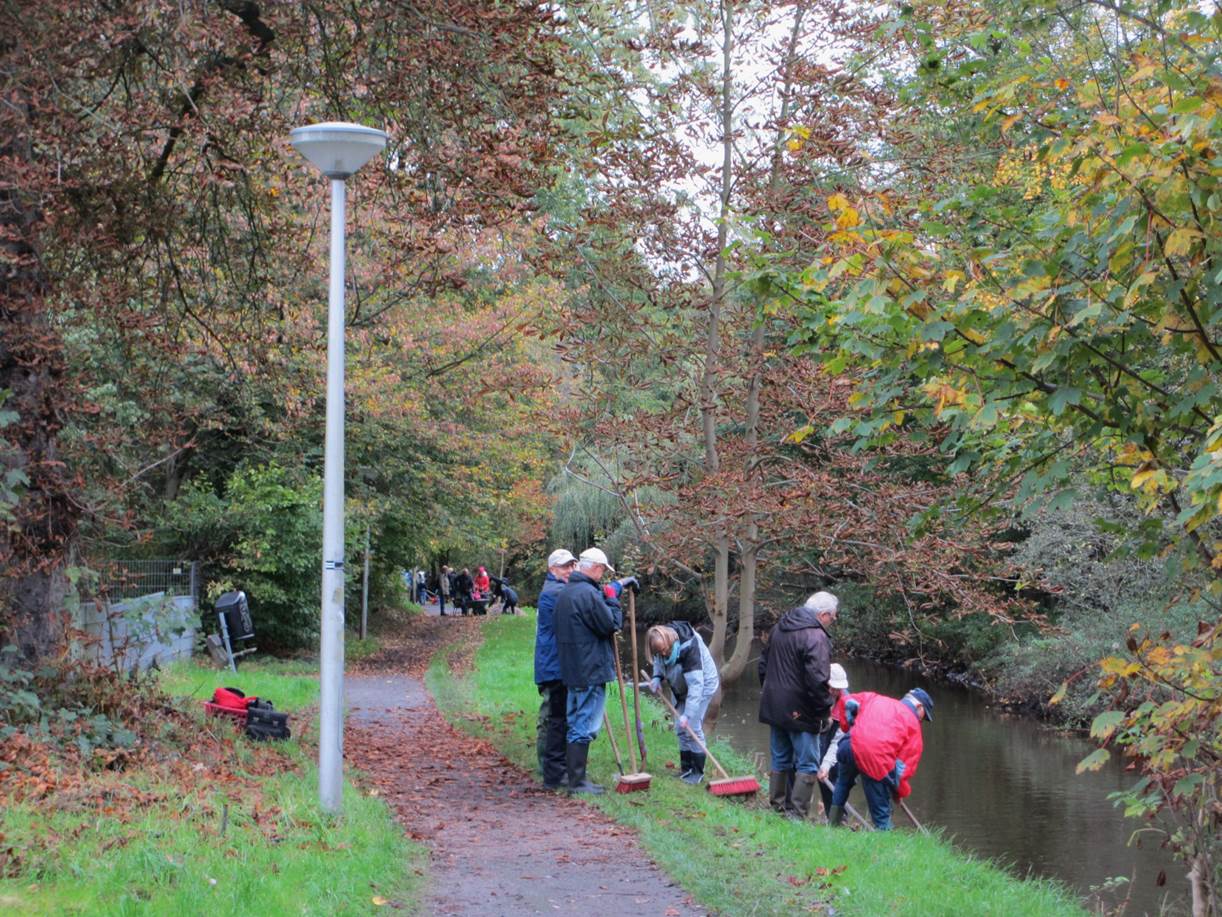 Nach erstem „Training“ an der ländlichen Mühlenau in Bönningstedt (Beiträge vom 20. Februar und 27. April 2017) sowie im städtischen Raum Pinneberg (Beitrag vom 5. August), den Gewässerlebensraum mit Kies zu verbessern, fand am 21. Oktober 2017 der erste Bach-Aktionstag mit interessierten Bürgerinnen und Bürgern statt – ca. 60 Aktive fanden sich südlich der Brücke Mühlenstraße ein. An 10 Schüttstellen arbeiteten insgesamt 4 Gruppen, je eine Anglerverein Elmshorn-Barmstedt und NABU Pinneberg, zwei der Naturfreunde Pinneberg. Zwanglos schlossen sich Nachbarn und „Zugereiste“ aus benachbarten Gemeinden einer der Gruppen an.
