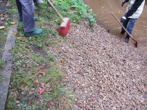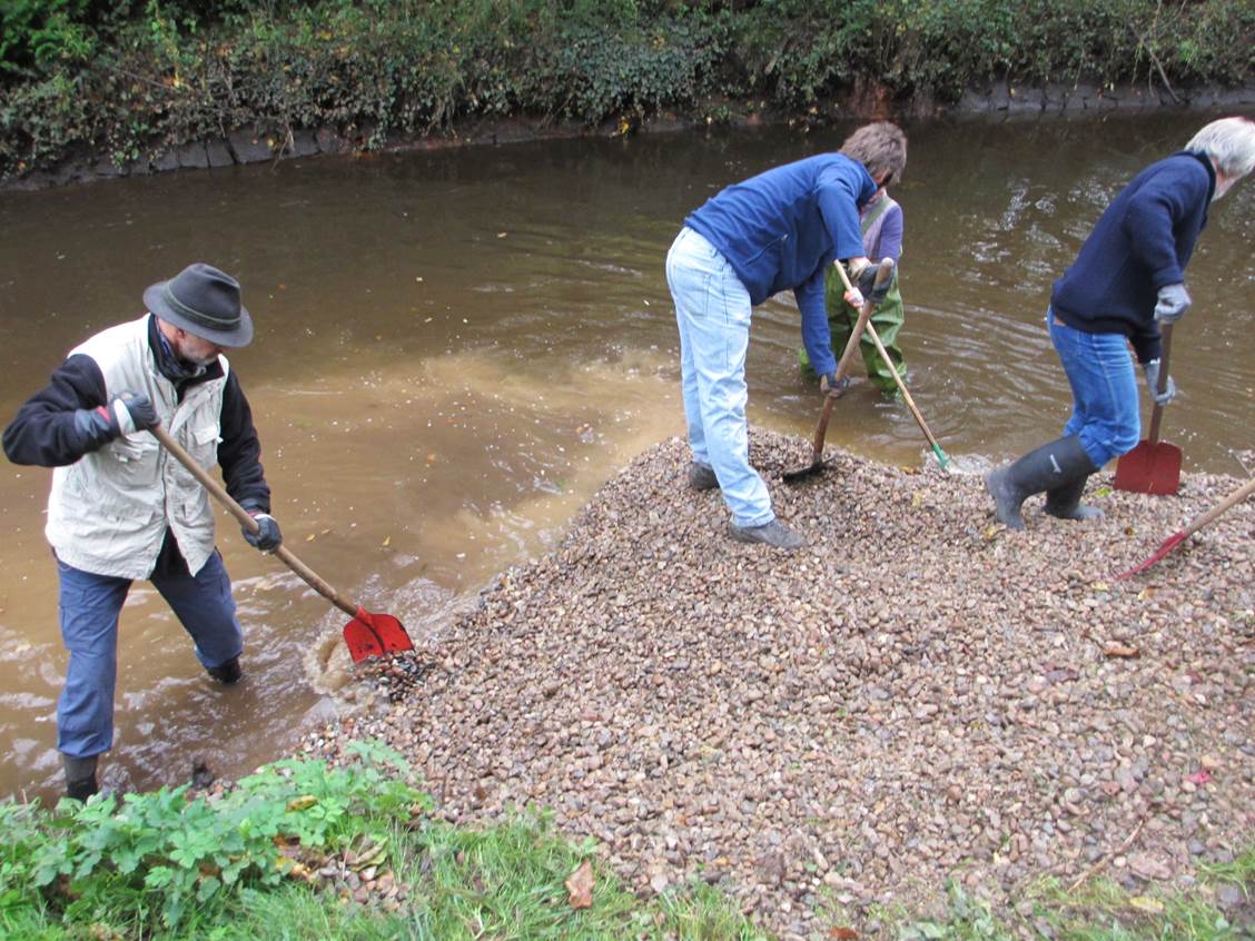 Die oberen Schüttstellen sind fertig bearbeitet – ganze Arbeit durch die Wathosen-gekleideten Angler des ASV Elmshorn-Barmstedt.