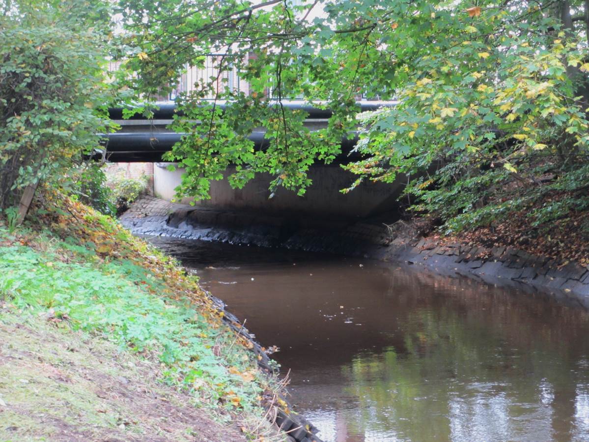 Blick über die Brücke Mühlenstraße Richtung Mündung in die Pinnau – Halbtide am Pegel Uetersen. Das Wasser wird weiter sinken, gut für unsere Arbeit.