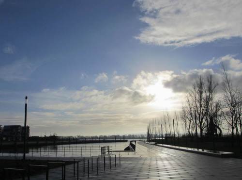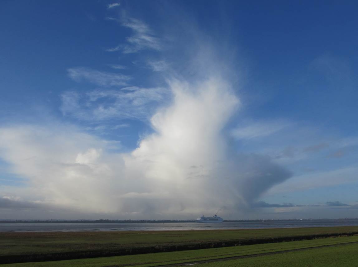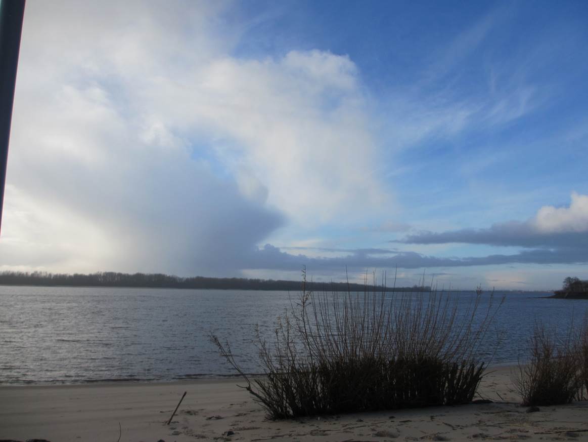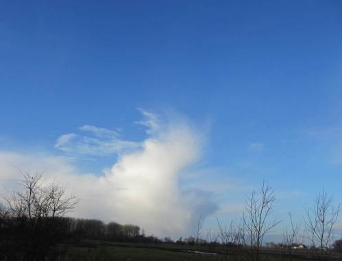 Blauer Himmel über Geest und Marsch – ist das die berühmte Friedenstaube am Horizont? – Wohl eher eine der angesagten Schnee-Graupel-Fronten …