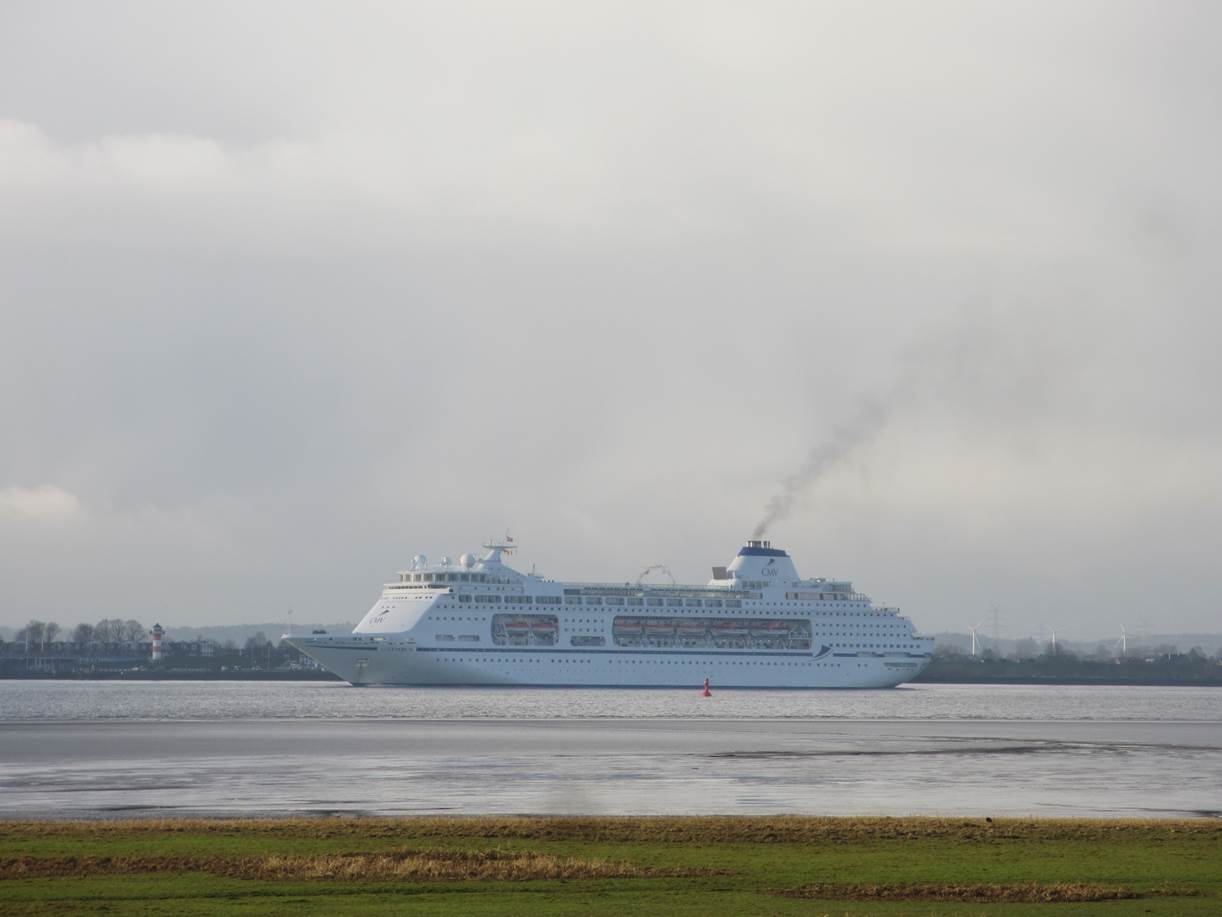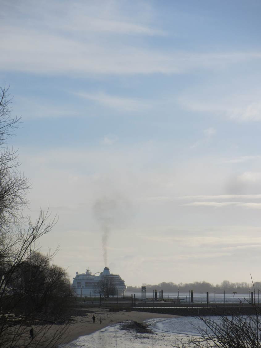 So weiss diese Traumschiffe meist sind – der Schweröl-Rauch aus den Schornsteinen ist es nicht. In Hafenstädten verursacht die Schifffahrt einen wesentlichen Teil der Luftverschmutzung. – Wie beim Auto / Diesel: in anderen Ländern tut man mehr dagegen, ist man weiter.
