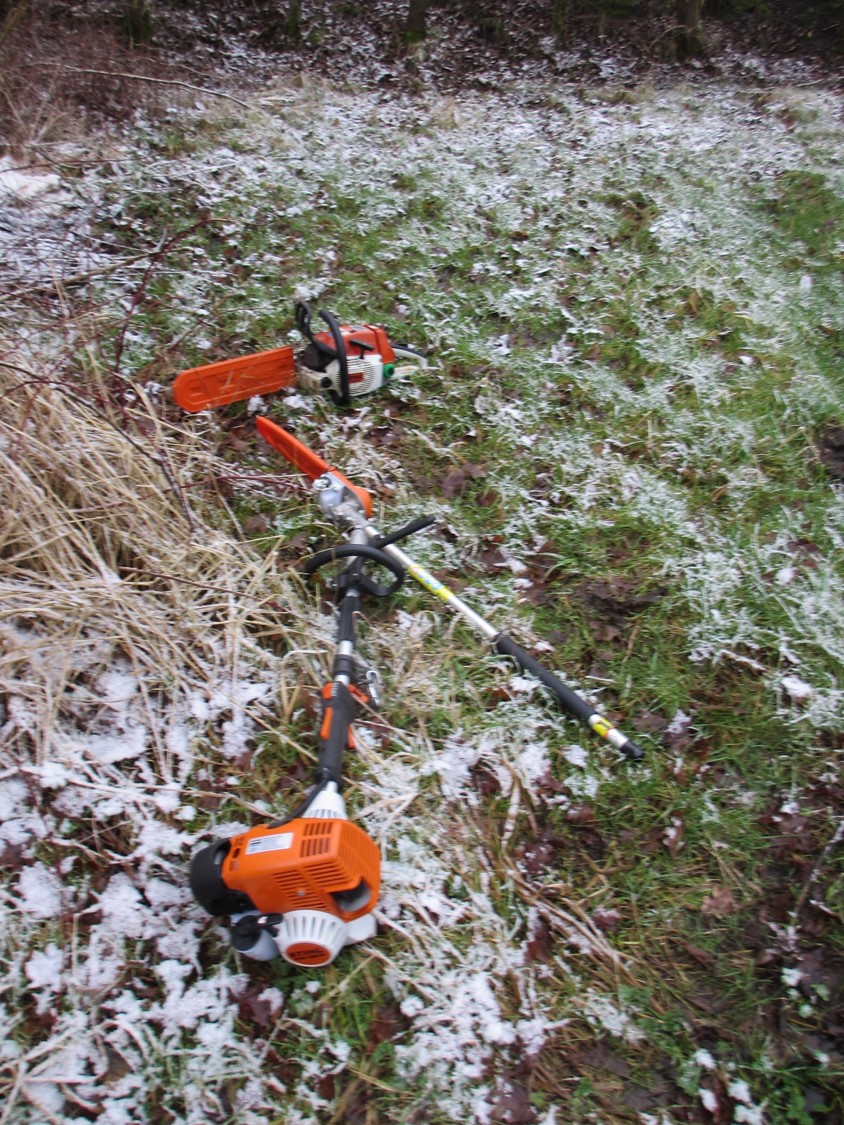 So ging denn die Reise – diesmal mit dem Auto wegen Transportnotwendigkeit – über die Nachbardörfer, um mit Gleichgesinnten einen Knick an einer Naturschutzfläche zu pflegen. Wegen „HuSt“ haben wir uns auf Hasel konzentriert (man kann auch anders).