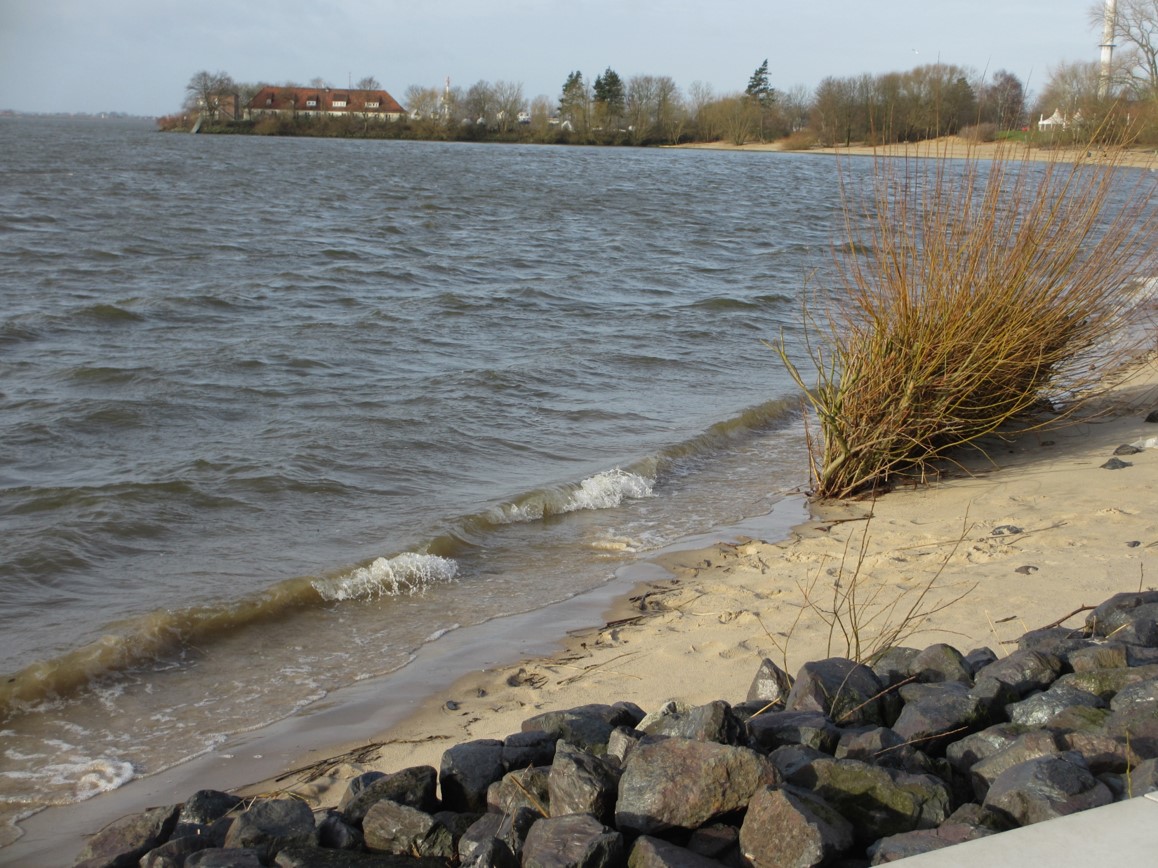 Derselbe Sandstrand zwischen Ebbe und Flut – steile Böschungsneigung. Wo bleibt „unser“ Sand, wird oft gefragt.