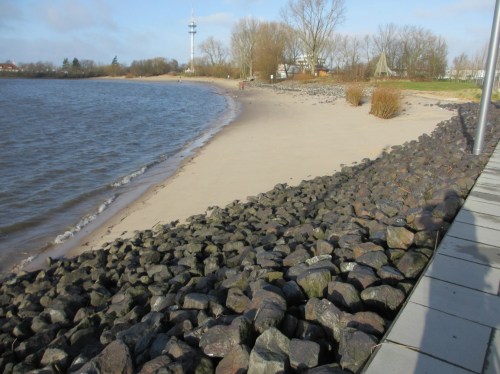 Wer etwas von der Baggerei ringsum kennt, vielleicht hier im Blog schon die Saugbagger- und Verklappschiffe gesehen hat – und dann noch Ebbe und Flut einbezieht -, wundert sich nicht, dass der Sand „oben“ verschwindet. Fast beim Zugucken …