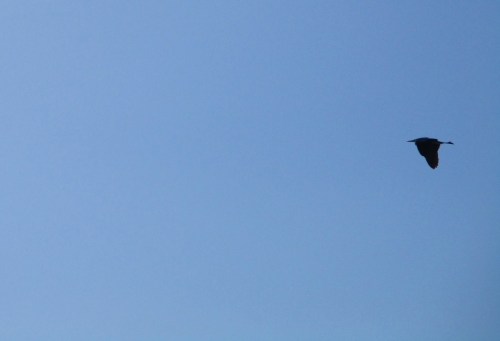 Kleines Rätsel mit Lösung: Diese scheinbar von Links nach Rechts fliegende Gans ist in Wahrheit ein entgegengesetzt fliegender Graureiher.