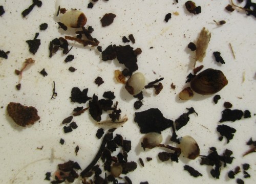 Über die Besonderheit laichender Flussneunaugen ist in jüngeren Blog-Beiträgen zweimal berichtet worden. Jetzt sollen „die normalen“ Wirbellosen wie Larven von Eintags-, Stein- und Köcherfliegen folgen sowie Bachflohkrebse und anderes Getier. Wie sieht es in den Kiesen und an den und um die Treibselsammler herum aus?