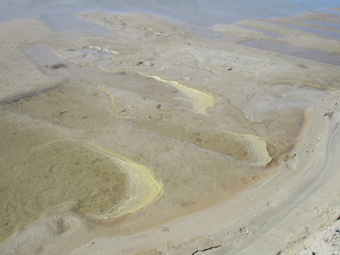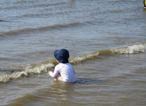 Die Nordsee bei Ostwind, noch friedlicher. Braun – ist hier Rungholt angespült (der verklappte Hamburger Hafenschlick doch wohl nicht, per Nordwanderung)?
