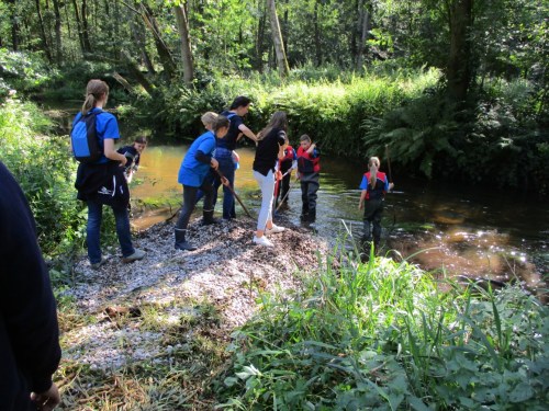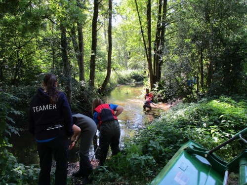 Ca. 70 Schülerinnen und Schüler der „Unterelbeschulen“ mit Betreuern und „Teamern“ hatten sich im Wildpark Eekholt eingefunden, um Erfahrungen mit der biologischen, chemischen und physischen Beschaffenheit der Fliessgewässer im Wildpark Eekholt zu machen. Neben Untersuchungen und deren Auswertung stand zum 2. Mal Restaurieren der Osterau mit Kies und Holz an – hier der Kies-Bericht.