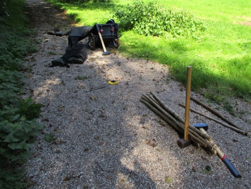 Eine gute Hilfe beim Einrammen boten 2 neu hergestellte Metallhülsen mit Griff.