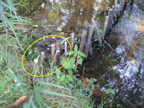 Die Treibselsammler 2017 wurden überprüft. Wo nötig, wurden ein paar Stöcke ergänzt – hier im Uferbereich, um Umströmung mit Land-Erosion zu verhindern.