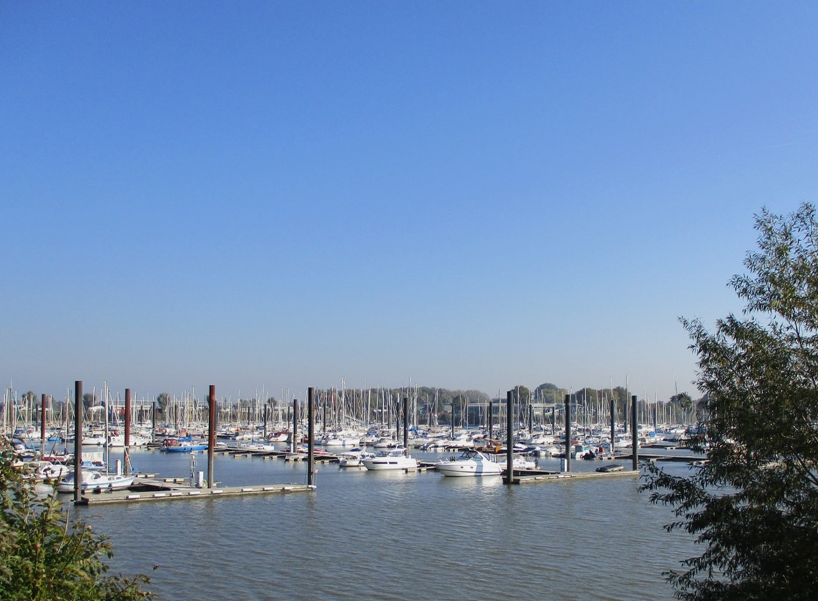 Die Parkplätze sind gut belegt, emsiges Treiben – alle 20 Minuten wird eine Yacht aus dem Wasser geholt und reiht sich in die wachsende Zahl aufgebockter Schiffe ein. Manche Motor- oder Segelyacht wird per Transporter verfrachtet und überwintert anderswo.