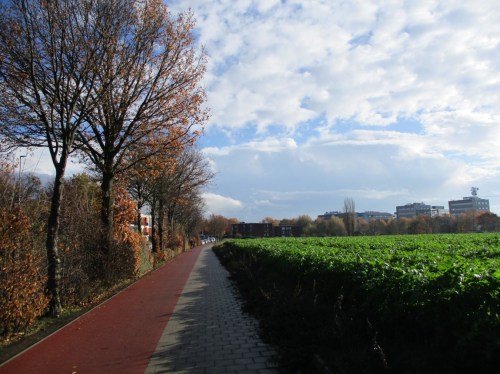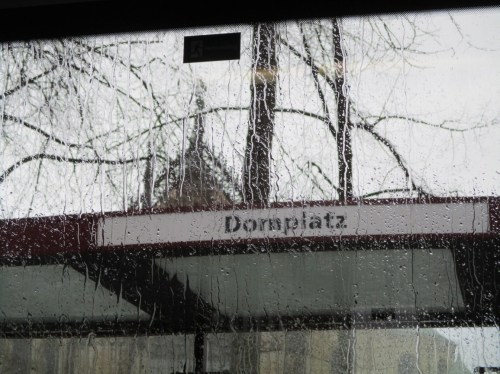 Dom Münster, hinter Wasser. Packe ich den Schirm aus – oder nicht? Erstmal warten, noch fahre ich ein Weilchen.