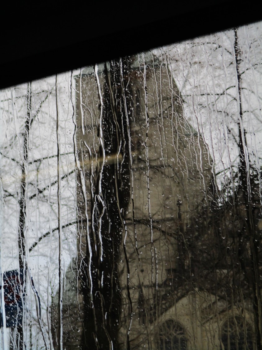 Dom Münster, hinter Wasser. Packe ich den Schirm aus – oder nicht? Erstmal warten, noch fahre ich ein Weilchen.