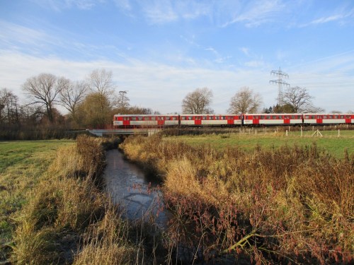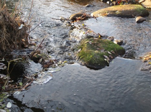 Im nächsten Beitrag zeigt sich die Mühlenau bachab, städtisch in Pinneberg. Bei Niedrigstabfluss wartet sie geradezu auf die demnächst anstehende Fortsetzung der Bekiesungen.