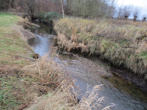 Am 20. Dezember 2017 hatte ich hier über die extrem lebensunfreundliche Gewässerstruktur der Moorbek bachab der Bebauung Norderstedts berichtet. Spuren von Fischen, die so gut wie vergeblich nach Laichmöglichkeiten suchten, stellten einen makabren „Höhepunkt“ dar.