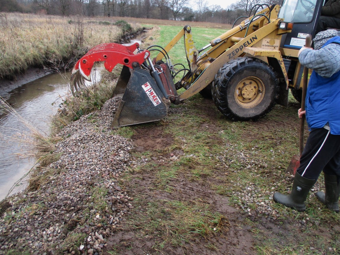 Bereits 2017 für die bachab liegenden Abstürze besprochene und 2018 vorgesehene Verbesserungen verzögerten sich zunächst wegen Nichtbefahrbarkeit des Umfelds, dann wegen Bedenken während der Sommertrockenheit 2018. Nun veranlasste ein erheblicher Uferschaden am oberen Bauwerk den Wasserverband, dort im Rahmen der Gewässerunterhaltung für Abhilfe zu sorgen. Dies konnte genutzt werden, beide Bereiche naturnäher zu gestalten.