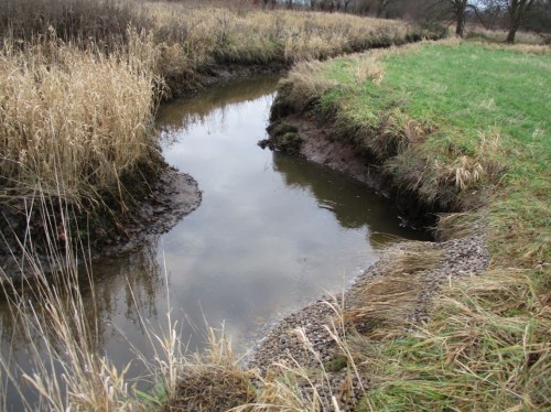 Bachauf des Doppelabsturzes kommt die Moorbek um eine 90-Grad-Kurve. Die galt es zu entschärfen.