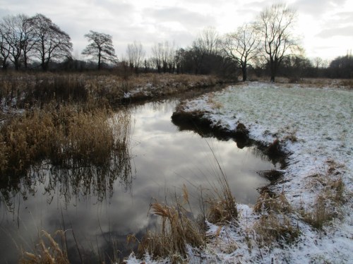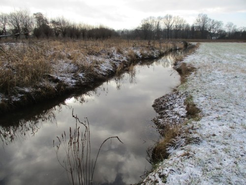 Das Stichwort oben „Pinnau im Tidebereich“ lässt gleichzeitig schliessen, dass wir nie bei Tidehochwasser, nicht einmal bei beginnendem Einstau durch auflaufende Flut vor Ort waren. Gestern passte es. Ein Sonnenspaziergang genau zu Thw (Tidehochwasser) zeigt „die andere Seite“ des Ohrtbrooksgrabens.