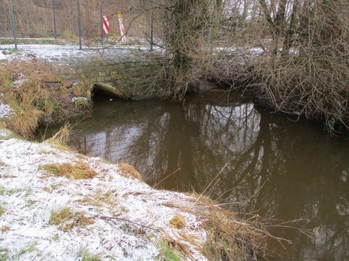 Ohrtbrooksgraben, Thw – hier werden gerade Fußgänger und Radfahrer um die Brücke Große Twiete umgeleitet, daher ein Schutzgitter neu beidseitig des Übergangs.