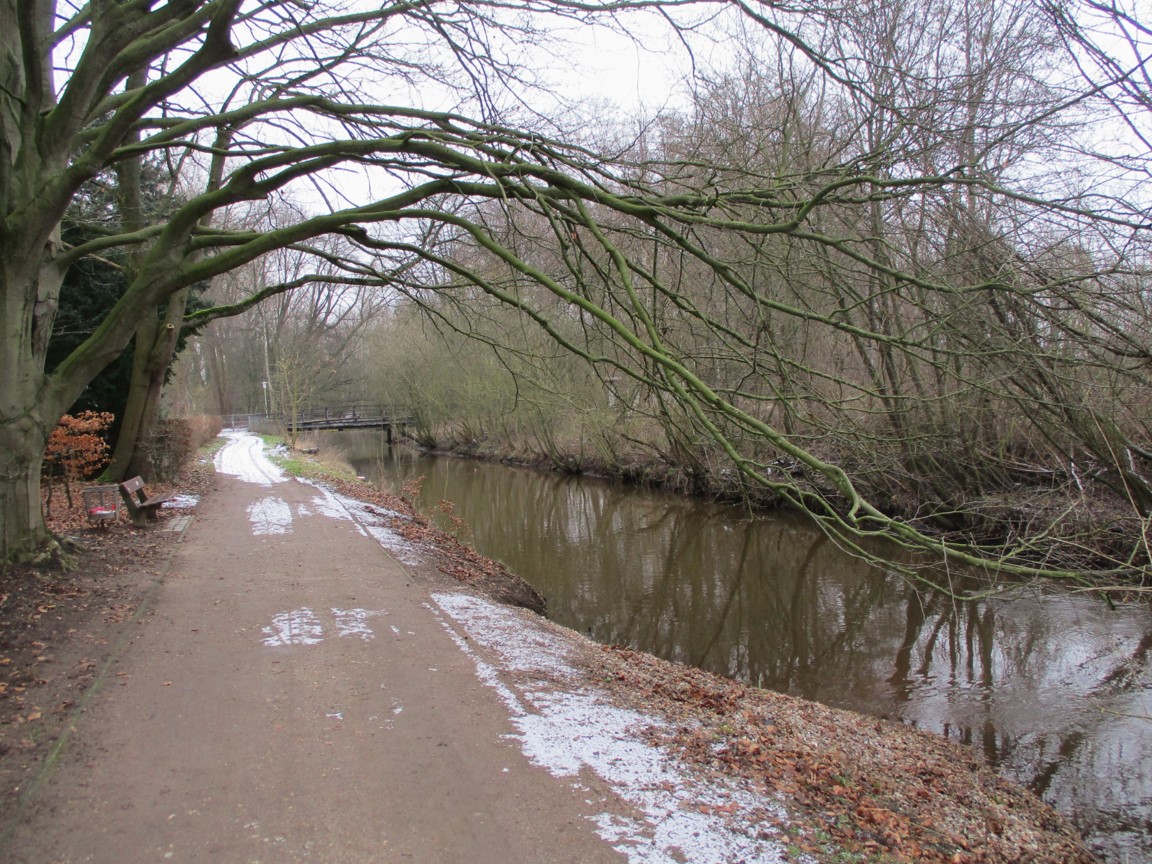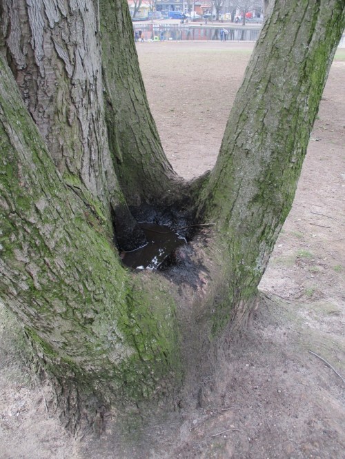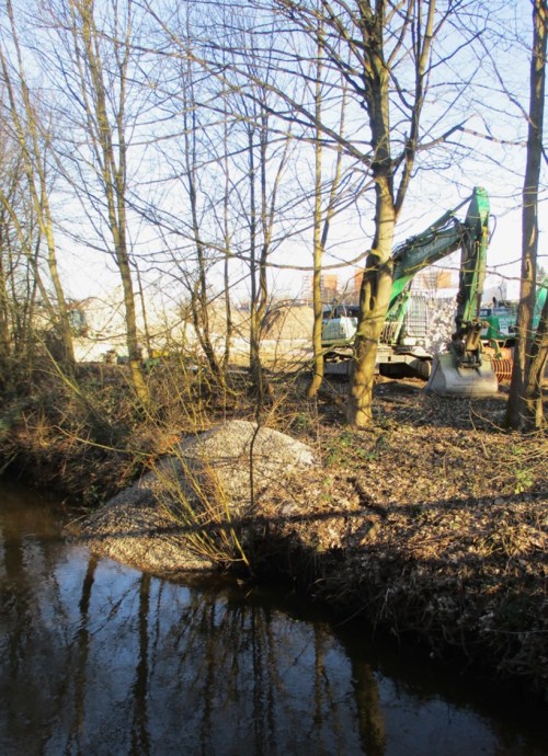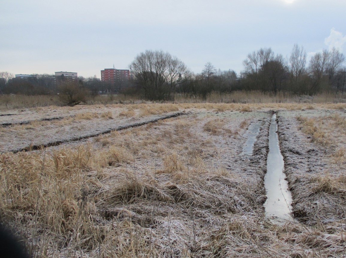 Ich gehe zum neu verabredeten mittäglichen Treff, vorbei an einem „Naturbad“. Der nasse Rand zeugt noch von den Aktivitäten mehrerer Meisen.