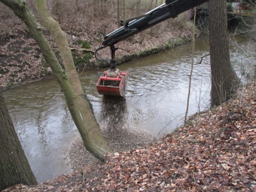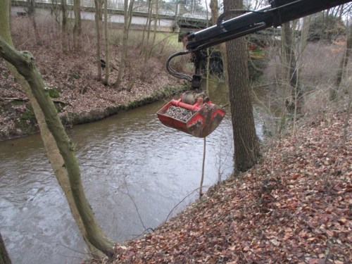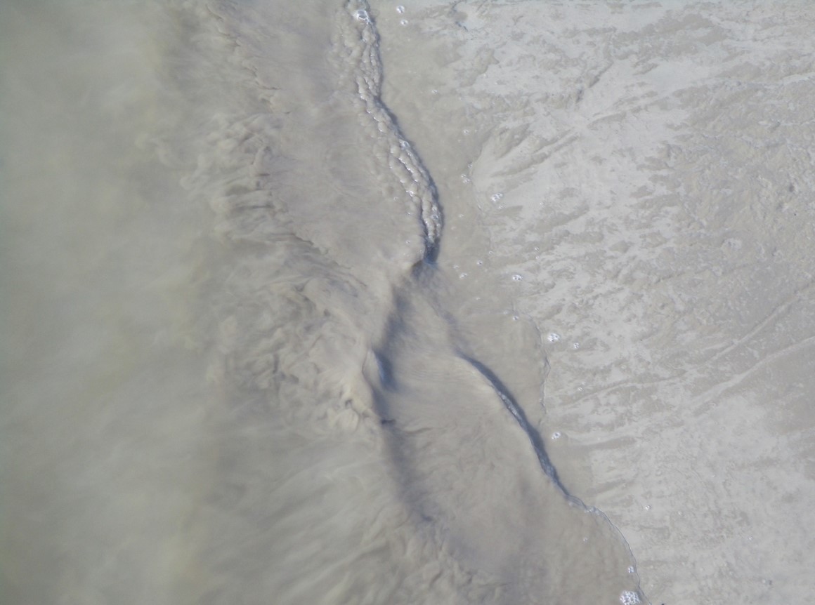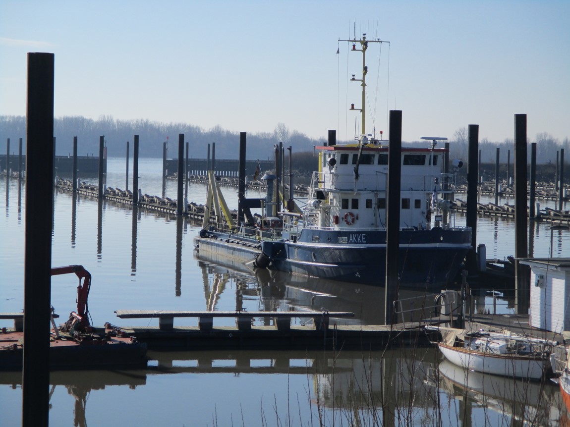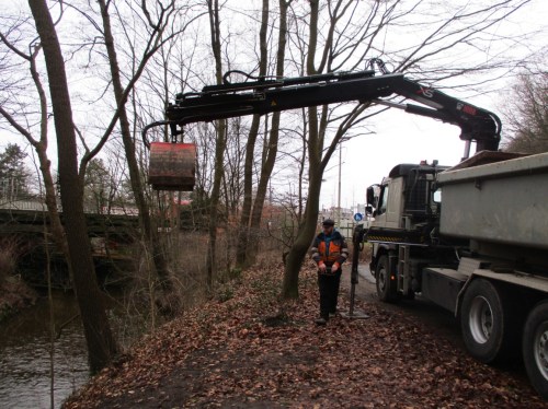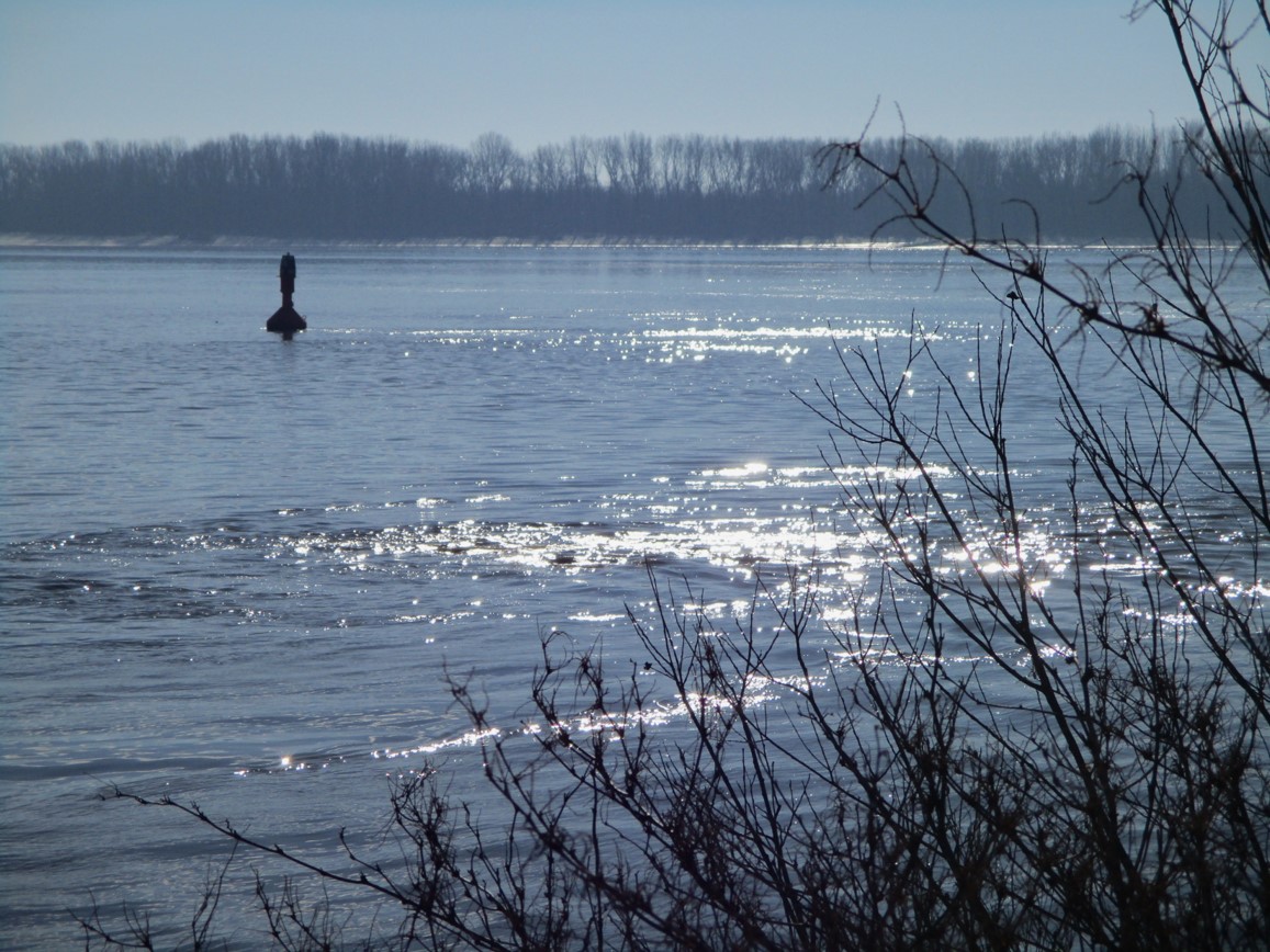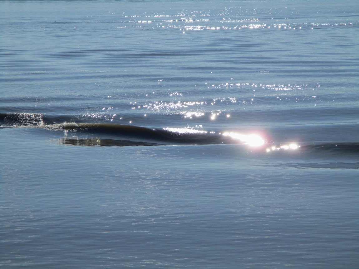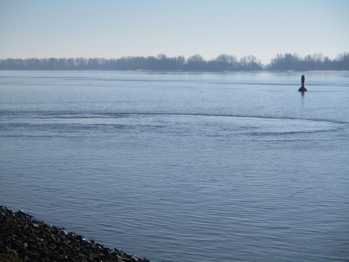 (Oha, gerade noch Mal gut gegangen!) … der Ball mit Transportgerät Richtung eines Tors uferparallel von Spieler zu Spieler geschlagen wird. – Dabei bleibt er nicht immer in Reichweite …