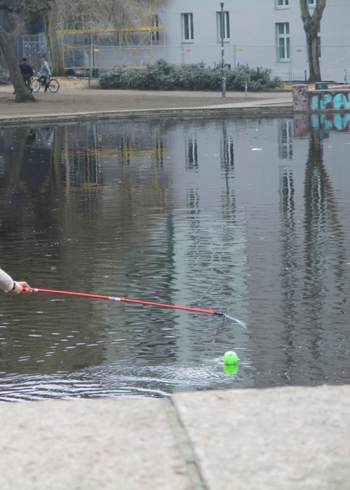 Aber, siehe da, das Monstrum ist als Spielfläche nutzbar. „Retten“ eines Balls mit seilgezogenem Schwimmring wird trainiert, bevor …