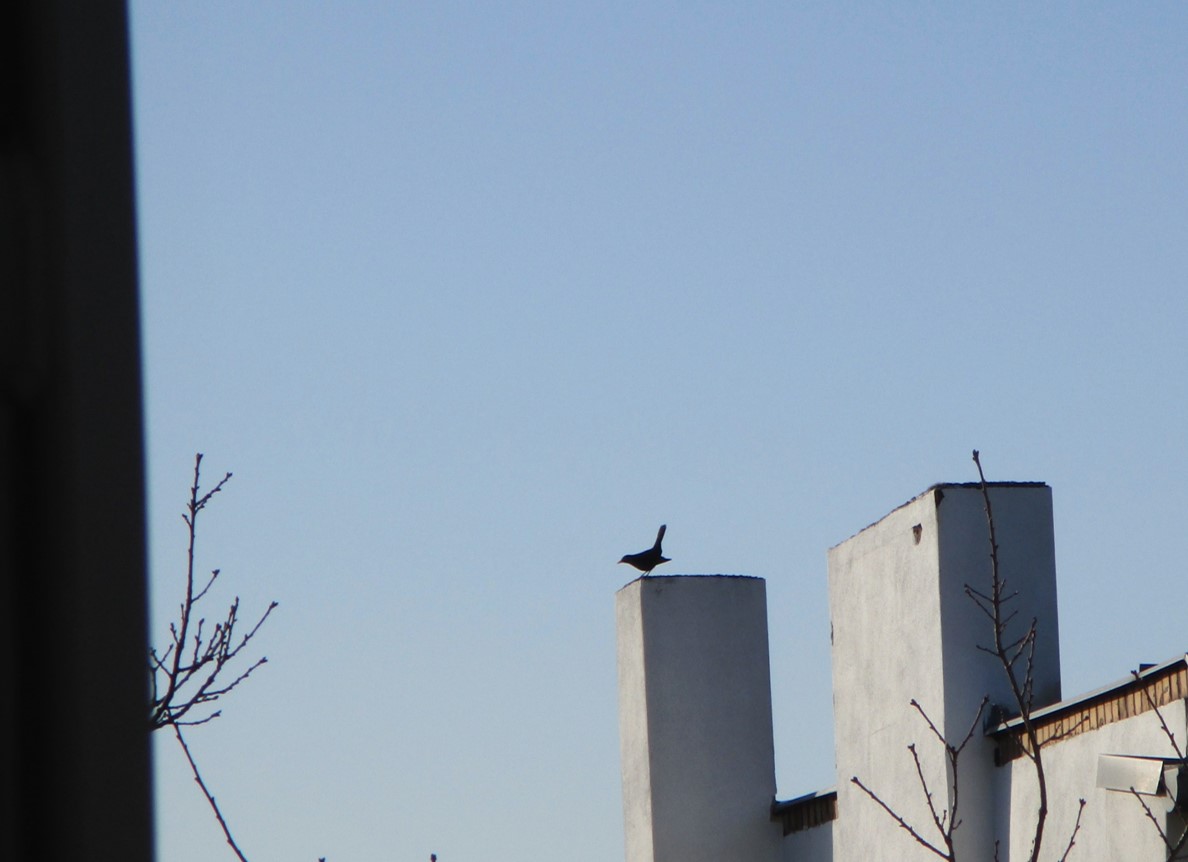 Der Amselhahn am sonnigen Morgen drauf ist bei der Balz nicht nur zu sehen, sondern auch zu hören. Prima!