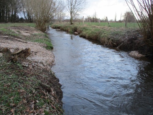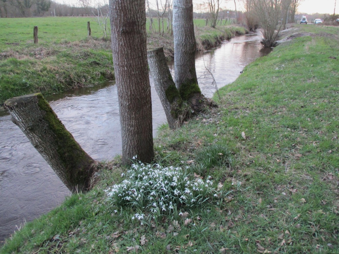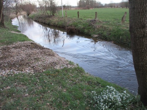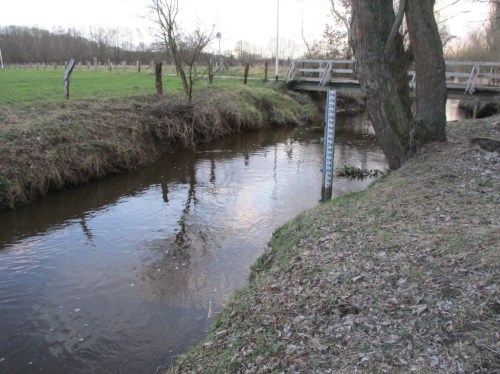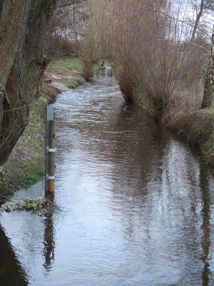 Die vor- und gestrigen Regenfälle liessen die Mühlenau auf Mittelwasser plus 25 cm ansteigen. Eine interessierte Gruppe wollte sich ansehen, wie die erhöhte Wasserführung über die neuen Rauschen abfliesst.