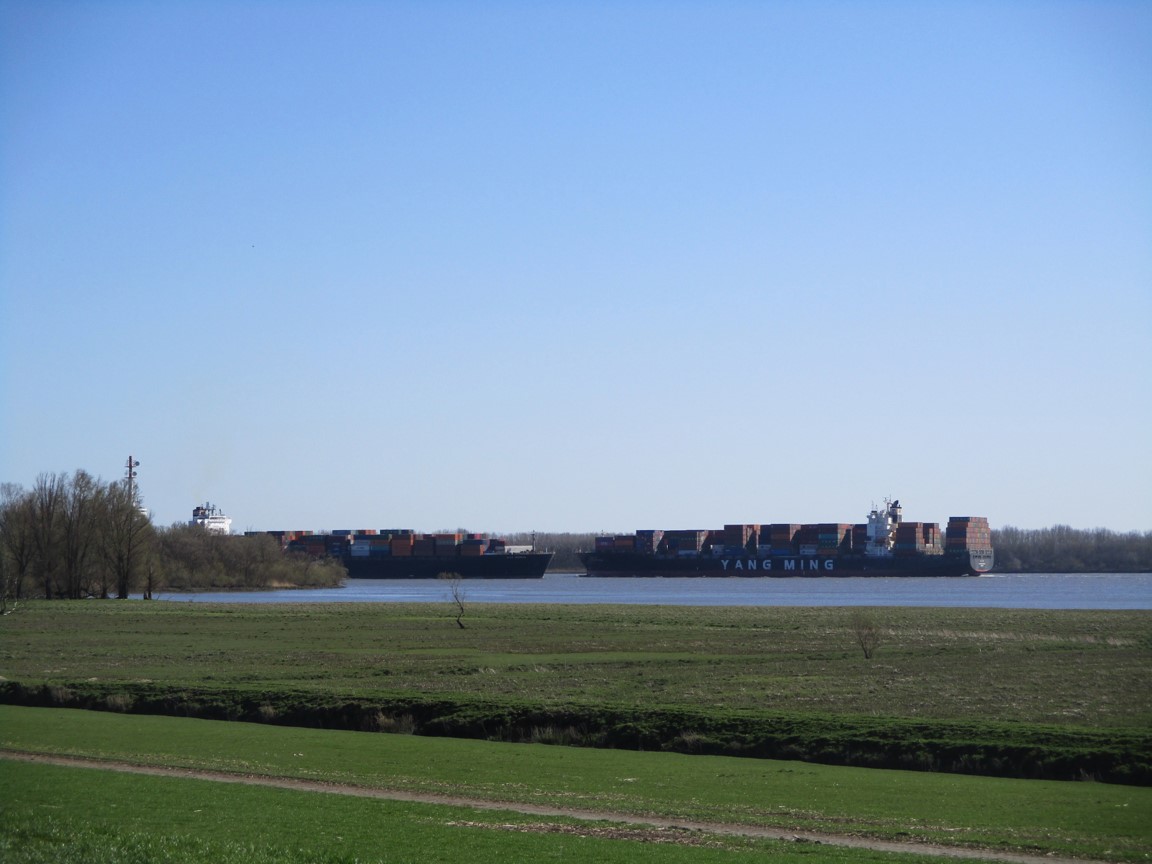An der Elbe blüht aber noch ganz etwas anderes – 2 Containerfrachter 260 und 294 m begegnen sich – die nächste Elbvertiefung. Wir werden uns noch wundern, nicht zuletzt im Steuerzahler-Portemonnaie.