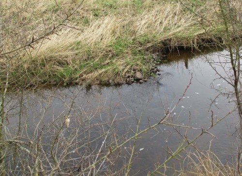 Blick bachauf – am Beginn des turbulenten Gefälles wird an jeder Uferseite Kies geschüttet. Der kann von der Ohlau dann als Laichkies in der rauen Strecke positioniert werden.