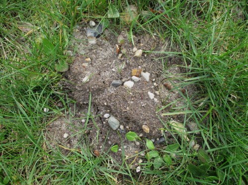 Maulwurfshaufen auf unserem Weg zeigen immer wieder: reichlich Steine – der Kiesbach ist das Leitbild auf Moräne.