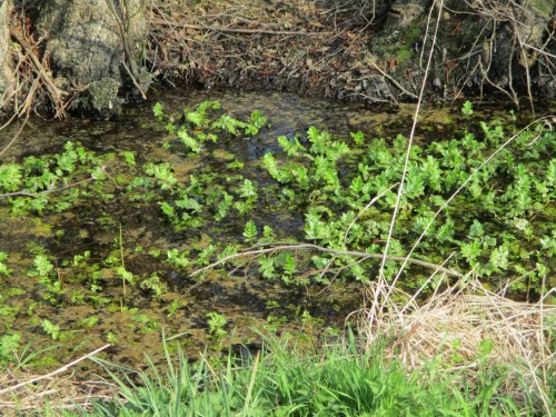 Merk (anderer Sprech: „Die Berle“) und gut Algen in besonntem Graben – Kaulquappen können Nahrung finden.