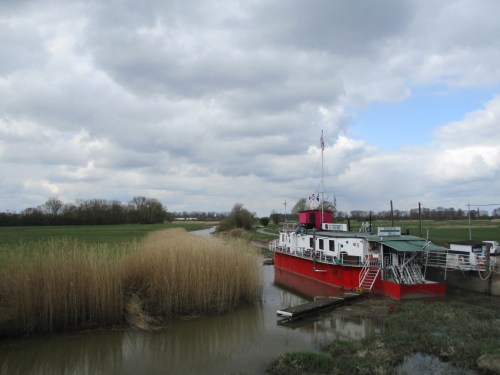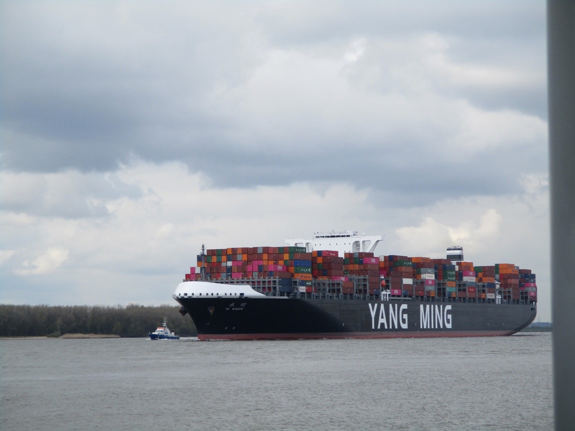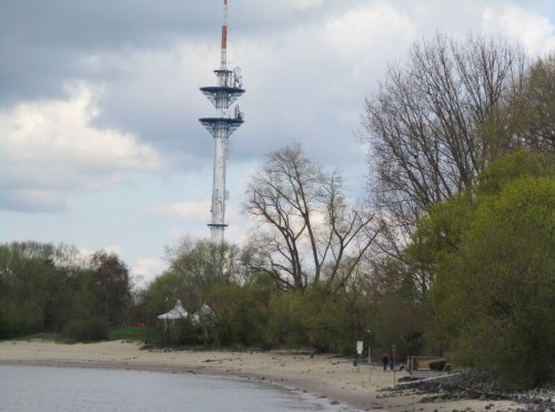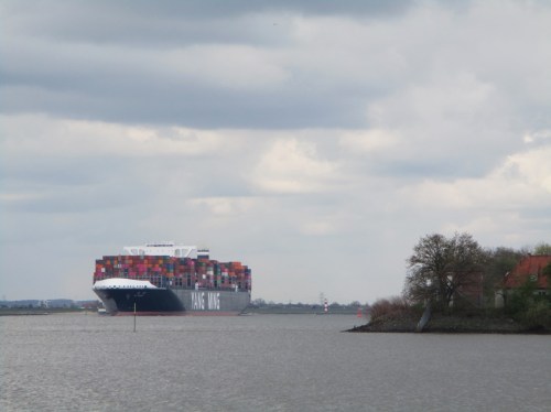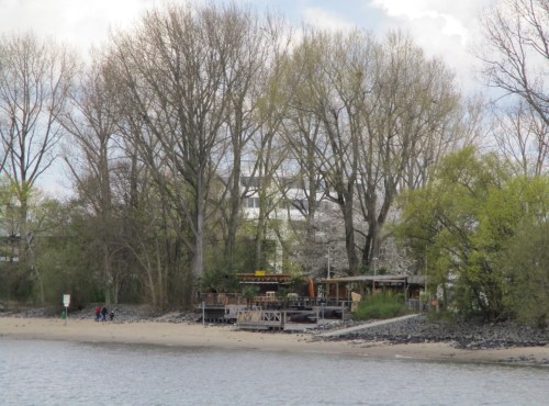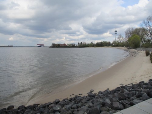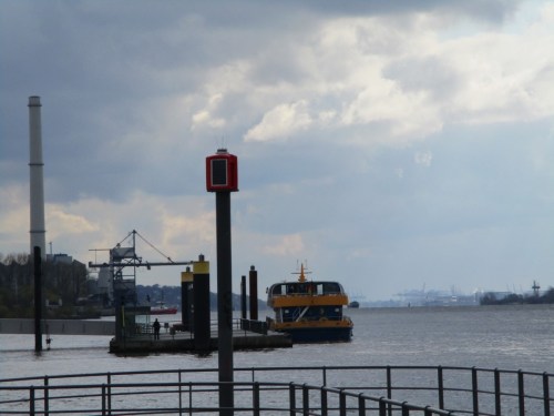 Blick Richtung Hafen Hamburg – die Lühe-Schulau-Fähre hat ihre Saison aufgenommen. Da fahren wir gern mal wieder mit, rüber nach Niedersachsen, radeln.